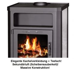 EEK A Wasserführender Kaminofen Victoria Comfort KB, Schwarz Mit Kachelverkleidung – 11kW