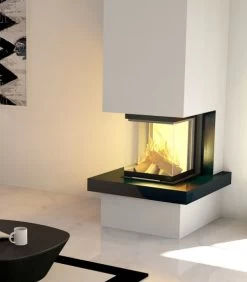 Eck-Kamineinsatz HAJDUK SMART 3PLh, rahmenlos mit drei Scheiben und Schiebetür