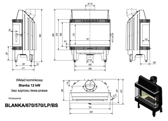 3-Scheiben Kamineinsatz Kratki BLANKA 670/570/LP/BS mit 11 kW