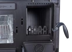 Kochen und Heizen gleichzeitig – Dieses Problem wird in eleganter, praktischer und rationeller Form gelöst: Mittels eines geräumigen Edelstahlbackfaches (eines der größten auf dem Markt) sowie der großen Kochfläche ist es möglich, unabhängig von Strom oder Gas vollwertig zu Kochen oder zu Backen. Durch das integrierte Backofenthermometer haben Sie die optimale Temperatur immer im Blick.