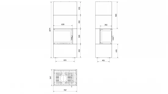 – Kaminkörper und Kaminfront aus massivem Stahl