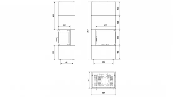 – Kaminkörper und Kaminfront aus massivem Stahl