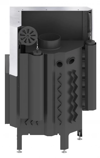 Die massiven Bauteile wurden durch einen hochmodernen Maschinenpark (CNC, 2D- und 3D- Laserschweißmaschinen sowie Pressen) gefertigt. Am Stahlkorpus (gefertigt aus hochwertigem Kesselstahl ) wurden zudem als Konstruktionsverstärkung und Verbesserung der Wärmestrahlung Stahlrippen angeschweißt. Außerdem wurden Warmlufttauscherrohre im Kaminhut integriert.