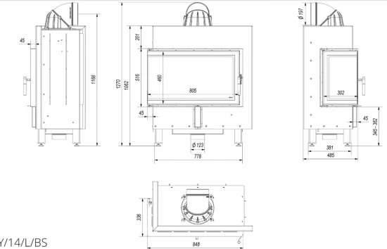 Eck-Kamineinsatz Kratki LUCY/14/L/BS mit 14 kW