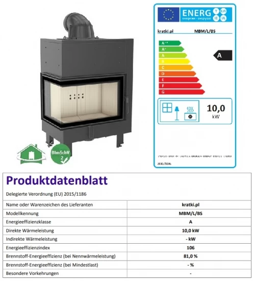 Kamineinsatz Kratki MBM 10 mit Eckscheibe links