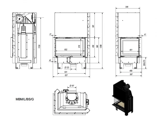 ECK-Kamineinsatz Kratki MBM 10 links BS mit Schiebetür – 10 kW