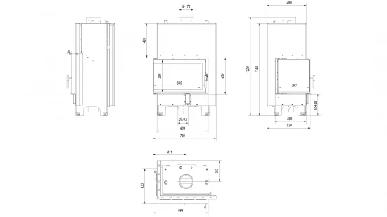 – Kaminkörper und Kaminfront aus massivem Stahl