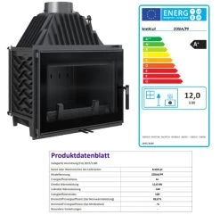 Dieser Kamineinsatz aus Gusseisen erfüllt auf Grund seiner zukunftsweisenden Konstruktion die erforderlichen BIMSCHV-Emissionswerte für Deutschland (Stufe II). Die hitzeresistente Glaskeramiksichtscheibe ist beständig bis zu 800°C. Es handelt sich um eine sog. rahmenlose Designglasscheibe.