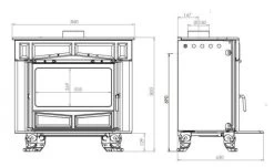 Im großen Brennraum finden Holzscheite bis zu einer Länge von 56 cm Platz. Die massive Gusseisenkonstruktion sorgt für Langlebigkeit und damit jahrelanger, ungetrübter Freude am Heizen. Das Gerät ist aufwendig abgedichtet und besitzt einen herausnehmbaren Aschekasten. Der Rauchrohranschluss kann oben oder hinten erfolgen (leicht umbaubar). Wenn Sie den Rohranschluss hinten wählen, kann die Topplatte zum Kochen von Speisen und Getränken genutzt werden.