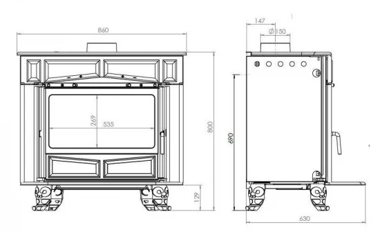 – Ofen aus massivem, dickem Gusseisen (145kg schwer!)
