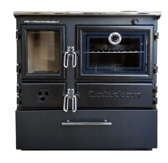 Kochen und Heizen gleichzeitig – Dieses Problem wird in eleganter, praktischer und rationeller Form gelöst: Mittels eines geräumigen, emaillierten Backfaches sowie der großen Kochfläche (Gusseisen) ist es möglich, unabhängig von Strom oder Gas vollwertig zu Kochen oder zu Backen. Im Lieferumfang ist bereits ein Backrost für das große Backfach sowie ein Grillrost für den Brennraum enthalten. Mittels dem eingebauten Backofenthermometer haben Sie die optimale Backtemperatur immer im Blick.