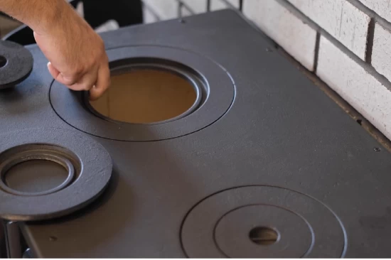 Neben der Funktionalität wurde auch Wert auf die Langlebigkeit gelegt. Die Herplatte ist aus massiven Gusseisen gefertigt und verfügt herausnehmbare Ringe. Somit ideal für unterschiedliche Topf- oder Pfannengrößen. Durch das Herausnehmen eines Ringes in der Herdplatte kann direkt über der Flamme gekocht werden. In der heutigen, krisenreichen Zeit ist es vielleicht garnicht schlecht einen „Plan B“ zu haben. So sind Sie unabhängig von Öl, Gas oder Strom!