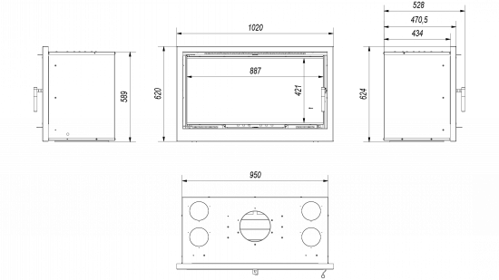 – Kaminkörper und Kaminfront aus massivem Stahl