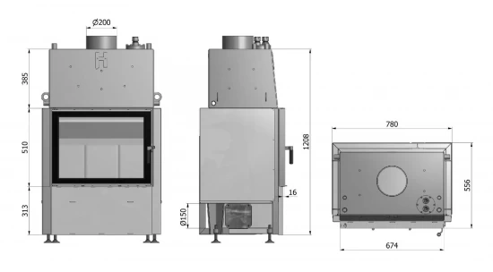 – Rauchrohranschluss: Ø 200 mm