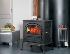 Weitere Ausstattungsmerkmale sind die bündig in die Ofenabdeckung eingelassene, herausnehmbare Kochplatte, der Rost und der Ascheschieber. Zusätzlich verfügt er über ein seitliches Fenster, das sich zum Reinigen öffnen lässt.