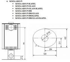 Der Kaminofen Kratki KOZA AB S N verfügt außerdem über einen externen Verbrennungsluftanschluss (100 mm), welcher hinten (am Fuß unten) oder nach unten abgehen kann.