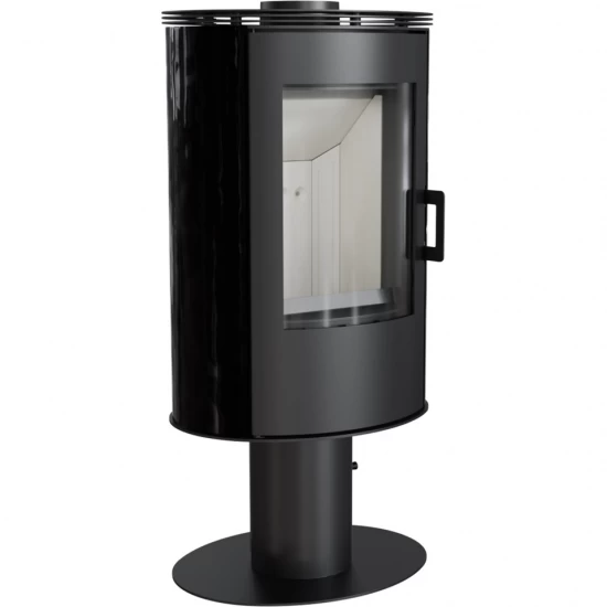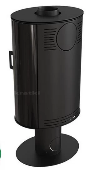 Dieser massive Ofen besteht aus robustem, qualitativem Stahl, der schwarz lackiert ist. Der Korpus ist an den Seiten mit schwarzen Kacheln verkleidet und hat eine elegante Form, die durch die extra große, abgerundete Panoramasichtscheibe geschmackvoll komplementiert wird. Die Feuerraumtür hat ebenfalls eine runde Form. Vervollständigt wird der Kratki KOZA AB S N durch einen exklusiven Designfuß.