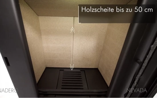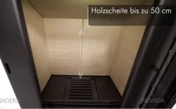 Zum Ausstattungsumfang gehört ebenso ein praktisches Aschefach zur einfachen Entleerung der Brennrückstände. Sensationell, der große Brennraum ermöglicht Holzscheite mit einer maximalen Länge von 50 cm.