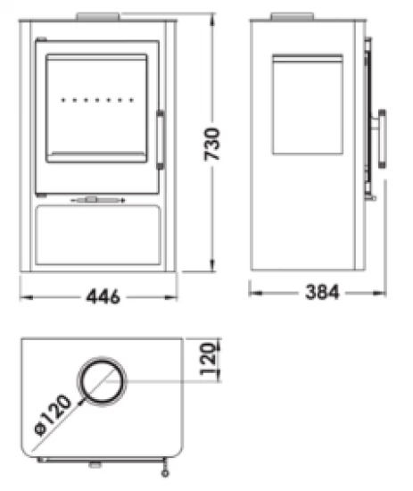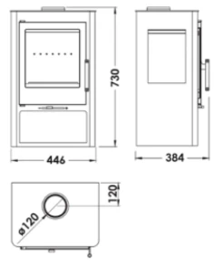 – Rauchrohranschluss: Ø 120 mm (nur oben möglich)
