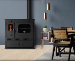 Kochen und Heizen gleichzeitig – Dieses Problem wird in eleganter, praktischer und rationeller Form gelöst: Mittels eines geräumigen Backfaches sowie der großen Kochfläche ist es möglich, unabhängig von Strom oder Gas vollwertig zu Kochen oder zu Backen. Mittels dem eingebauten Backofenthermometer haben Sie die optimale Backtemperatur immer im Blick. Alles ist möglich, Sie können auf der Herdplatte (aus Gusseisen) Spiegeleier braten, Eintöpfe kochen, einen Teekessel erwärmen oder nur den Glühwein für die Winterfeier aufwärmen bzw. warm halten. Im Backfach können Sie leckere Aufläufe kochen und z.B. Pizza oder Brot bzw. Brötchen aufbacken.