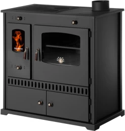 Kochen und Heizen gleichzeitig – Dieses Problem wird in eleganter, praktischer und rationeller Form gelöst: Mittels eines geräumigen Backfaches sowie der großen Kochfläche ist es möglich, unabhängig von Strom oder Gas vollwertig zu Kochen oder zu Backen. Mittels dem eingebauten Backofenthermometer haben Sie die optimale Backtemperatur immer im Blick. Alles ist möglich, Sie können auf der Herdplatte (aus Gusseisen) Spiegeleier braten, Eintöpfe kochen, einen Teekessel erwärmen oder nur den Glühwein für die Winterfeier aufwärmen bzw. warm halten. Im Backfach können Sie leckere Aufläufe kochen und z.B. Pizza oder Brot bzw. Brötchen aufbacken.