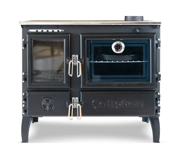 Kochen und Heizen gleichzeitig – Dieses Problem wird in eleganter, praktischer und rationeller Form gelöst: Mittels eines geräumigen, emaillierten Backfaches sowie der großen Kochfläche (Gusseisen) ist es möglich, unabhängig von Strom oder Gas vollwertig zu Kochen oder zu Backen. Im Lieferumfang ist bereits ein Backrost für das große Backfach sowie ein Grillrost für den Brennraum enthalten. Mittels dem eingebauten Backofenthermometer haben Sie die optimale Backtemperatur immer im Blick.