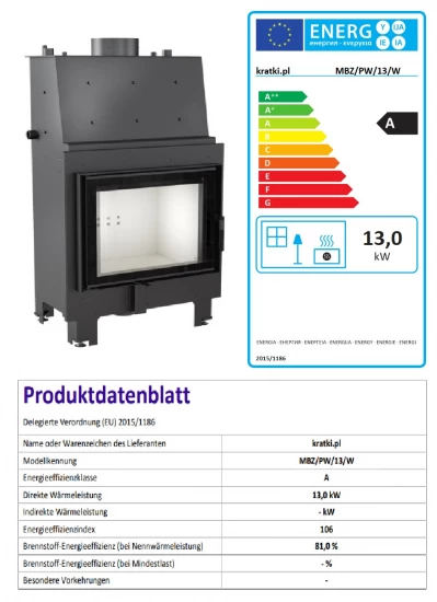 Wasserführender Kamineinsatz Kratki MBZ 13 PW mit 13 kW