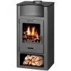 Im geräumigen Holzfach können Holzscheite gelagert oder nachgetrocknet werden. Das Gerät ist aufwenig abgedichtet und besitzt ein separates Aschefach mit großem Aschekasten. Im Holzfach können Scheite gelagert und nachgetrocknet werden.
