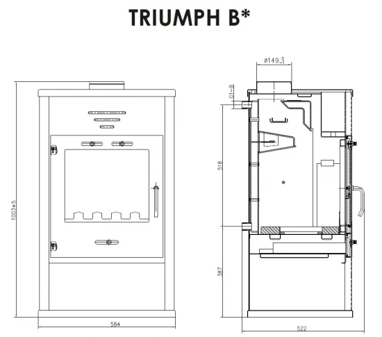– Großer Feuerraum / große Holzscheite möglich (bis 49 cm)