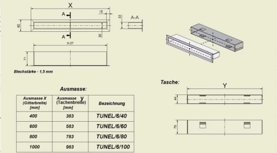 Die Kamin-Luftgitter (ohne Lamellen) können sowohl senkrecht als auch waagerecht eingebaut werden.