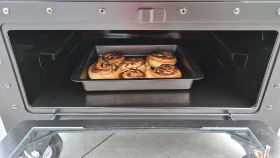 – Großes emailliertes Backfach (BxTxH ca. 435 x 440 x 155 mm) mit Einschub für Backblech oder Backrost (nicht im Lieferumfang enthalten)