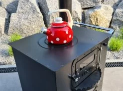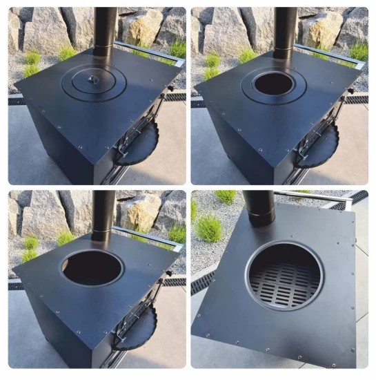 – Möglichkeit des Kochens über dem offenen Feuer durch herausnehmbare Ringe in der Deckplatte