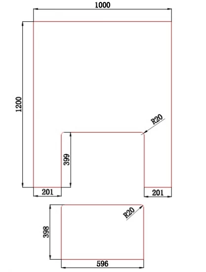 Der Clou der 2-teiligen Glasbodenplatte: Sie besteht aus zwei einzelnen Bodenplatten, die perfekt aneinander passen. Die kleinere Platte findet Platz unter dem Ofen, während die größere Glasplatte davor geschoben wird. Das Praktische dabei ist, dass die große Vorlegeplatte somit außerhalb der Heizsaison weggeräumt und erst bei Bedarf wieder angelegt werden kann. Die genauen Maße der beiden Bodenplatten entnehmen Sie bitte der Maßzeichnung.