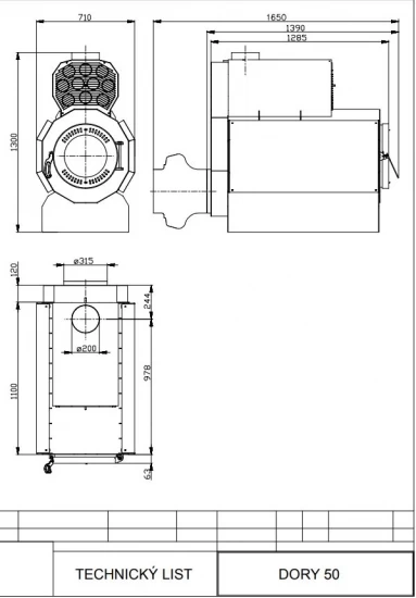 Die ausgefeilte Konstruktion des Ofens DORY 50 mit einem Wärmetauscher und einem radialen Ventilator zum Ausblasen der heißen Luft garantiert in Verbindung mit dem System der sekundären Verbrennung CB eine sehr hohe Wirksamkeit des Ofens.