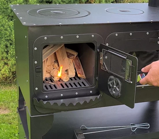 – Möglichkeit des Kochens über dem offenen Feuer durch herausnehmbare Ringe in der Deckplatte