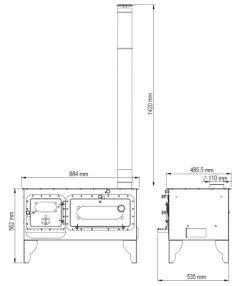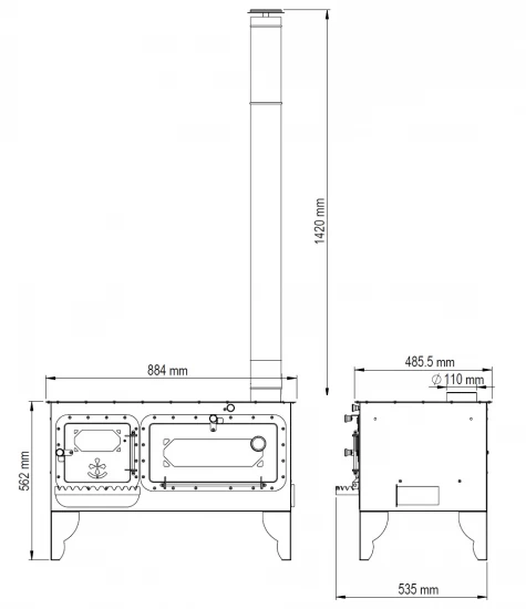 – Lieferung inkl. ca. 1,4m langem Schornstein (verlängerbar mittels 110mm Rauchrohr)